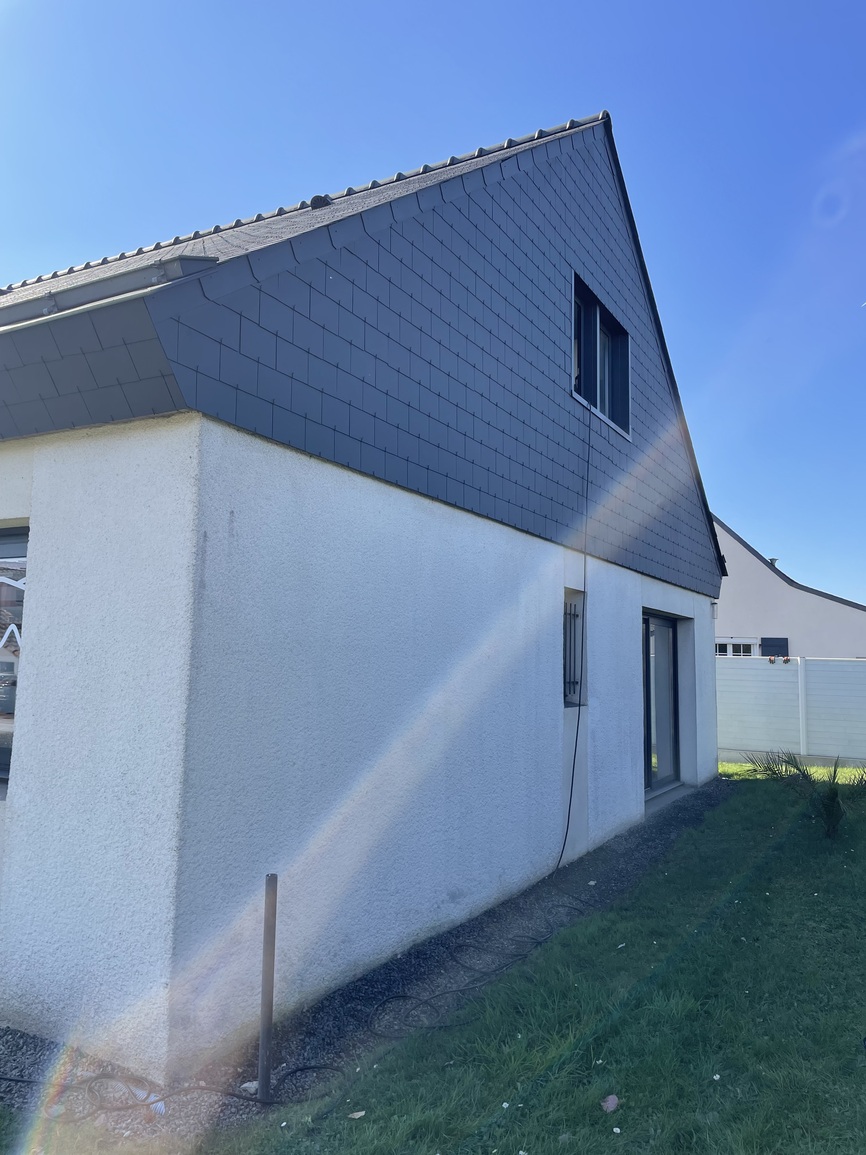 Chantier à Saint-Luce-sur-Loire Décapage d’ardoises fibro Hydrofuge coloré appliqué au pistolet